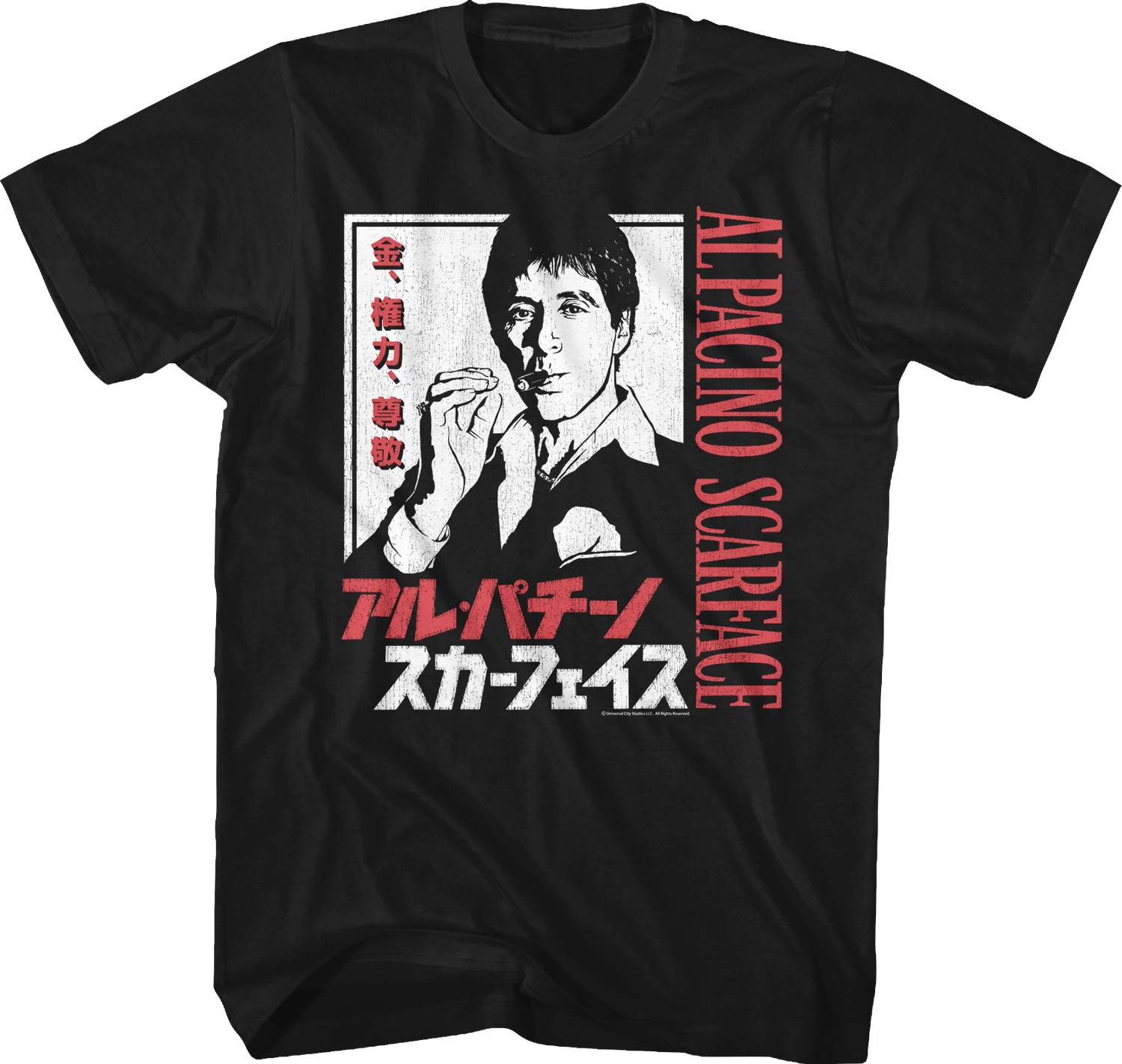Tony Montana wanted to live the American dream, and his story was loved in countries all around the world. Show that you are a fan of the 1983 classic with this Japanese Poster Scarface T-Shirt!