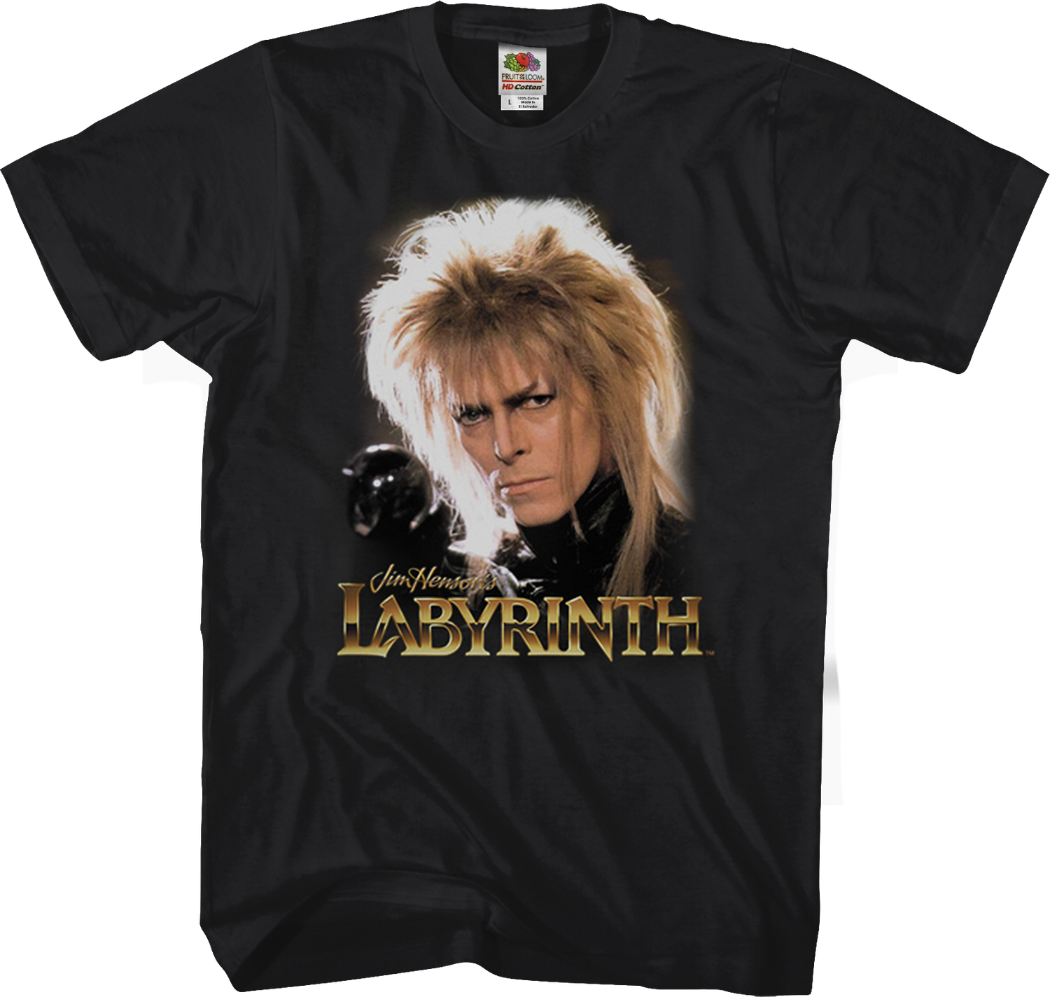Fear Jareth, love Jareth, wear Jareth on your Labyrinth t-shirt! This shirt features an image of the late, great David Bowie as the Goblin King from the classic 1986 fantasy film Labyrinth. This is the unforgettable movie that finds young Sarah Williams in the goblin kingdom, where she must battle a goblin army and save her baby brother. Everyone that sees you wearing this Jareth t-shirt will instantly know that you are a fan of Labyrinth. You'll be asking everybody, "Tell me, what do you think of my Jareth Labyrinth t-shirt?".