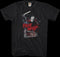 This Friday the 13th t-shirt features an image of Jason Voorhees wielding his favorite weapon, a machete above a doomed cabin at Camp Crystal Lake. The shirt looks like it has been splattered with the blood of Jason's victims.
