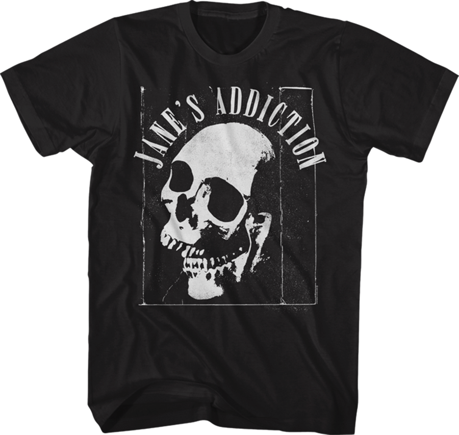This Jane's Addiction t-shirt features an image of a skull with a broken jaw.