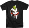 This Batman t-shirt features an image of The Joker, with his paint splattered on his face.