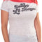 Now, you can look just like Harley with this junior Daddy's Lil Monster sublimation shirt. This shirt features the same blood-red shoulders and stitching along the left side that Harley wore on her shirt in Suicide Squad.