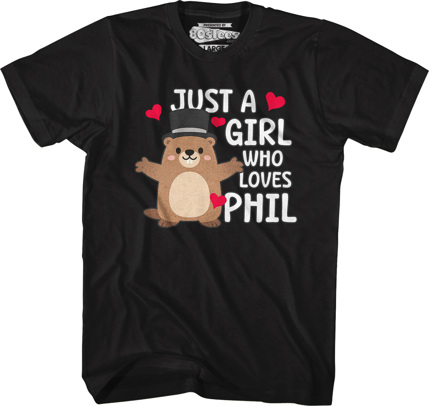 Punxsutawney Phil is an adorable groundhog who catches the eye of girls all around the world. Every February 2nd, Phil comes out of his burrow, and if he sees his shadow, there will be six more weeks of winter. If Phil does not see his shadow, spring will arrive early. This is a fun Groundhog Day tradition that is celebrated every year in Punxsutawney, Pennsylvania. Everyone will know you are a fan when you wear this 80sTees.com exclusive Just A Girl Who Loves Phil Groundhog Day T-Shirt!