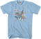 The characters that appear on this t-shirt are Superman, Batman, Green Lantern, Plastic Man, Hawkman, Aquaman and the Flash.