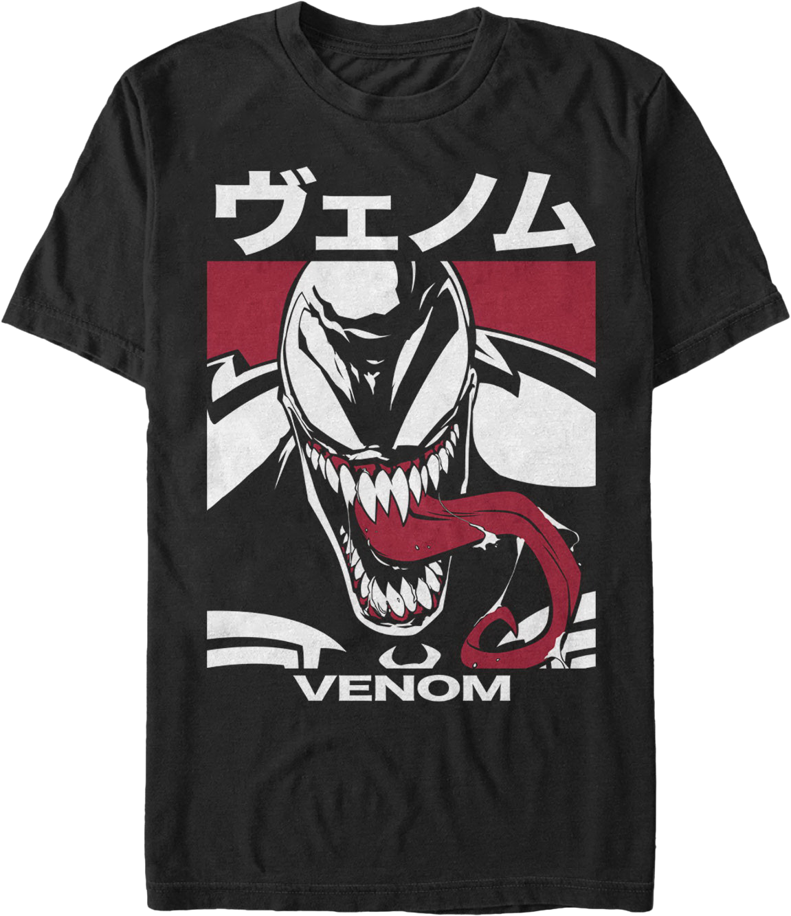 For any fan of the destructive symbiote, this Kanji Venom t-shirt is a must have!