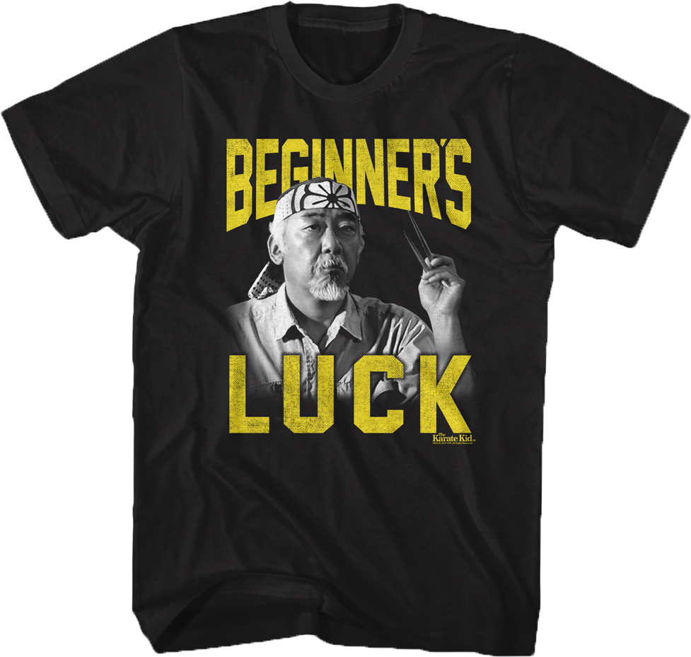Mr. Miyagi spent his whole life trying to catch a fly with chopsticks. Daniel-San caught one within a minute of finding out that trying to catch a fly with chopsticks was a thing. We think perhaps this was just karma catching up with Miyagi for making Daniel-San do all sorts of manual labor under the guise of karate tutelage. In that spirit, Beginner's Luck is printed on this Karate Kid t-shirt.