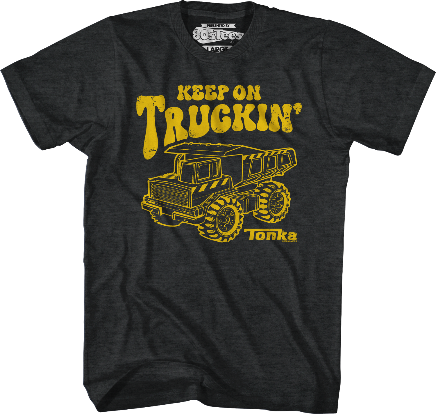 This 80sTees.com exclusive Tonka t-shirt features a dump truck, the most iconic and best-known truck from the Tonka brand. The shirt reads Keep On Truckin'.