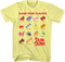 All of your favorite lollipop flavors are shown on this Know Your Flavors Dum-Dums T-Shirt. Listed along with colorful pictures are watermelon, blu raspberry, bubblebum, strawberry, cherry, cotton candy, cream soda, butterscotch, fruit punch, grape, orange, green apple, root beer, and mystery flavor. The mystery flavor is the result of the end of one batch mixing with the next batch in the machines.