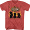 This ZZ Top t-shirt features the cover artwork for the band's fifteenth studio album, La Futura. The artwork shows silhouettes of Dusty Hill, Frank Beard, and Billy Gibbons.