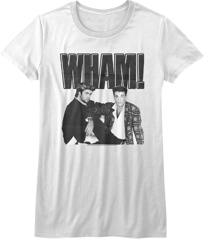 Everyone will know you are a fan of the iconic pop duo when you wear this Ladies Black and White Wham Shirt!