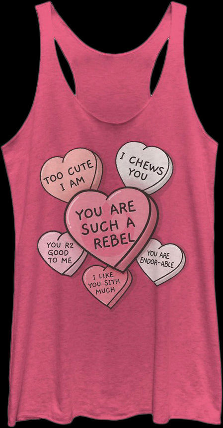 This Ladies Candy Hearts Star Wars Racerback Tank Top is the perfect Valentine's Day tank top for any fan of the greatest space saga of all time!
