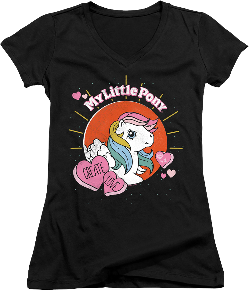 For any true child of the '80s, this Ladies Create Love My Little Pony V-Neck Shirt is a must have!