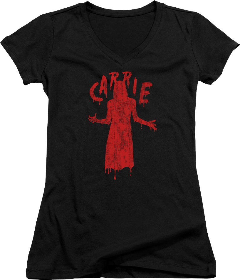 For any fan of the horror classic, this Ladies Dripping Blood Carrie V-Neck Shirt is a must have!