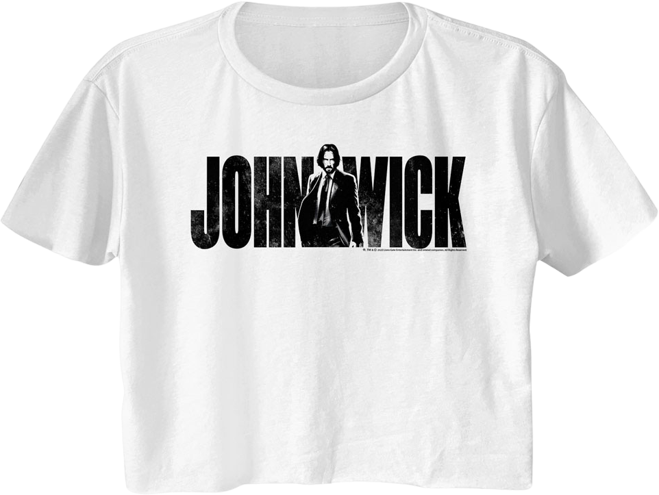Let everyone know you are a fan of the classic action character portrayed by Keanu Reeves when you wear this Ladies John Wick Crop Top!