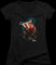 This ladies V-neck Rocky shirt shows the Italian Stallion draped in an American flag, celebrating a victory after defeating Ivan Drago. This image was used as the poster artwork for Rocky IV.