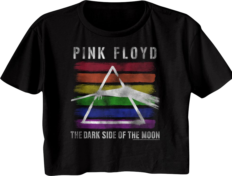 The Dark Side of the Moon has appeared on countless lists of the greatest albums of all time. Everyone will immediately know you are a fan when you wear this Ladies Rainbow Dark Side of the Moon Pink Floyd Crop Top!