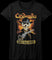This ladies Cinderella shirt shows a cowboy's skeleton holding a revolver. The shirt reads Rock & Roll Forever.