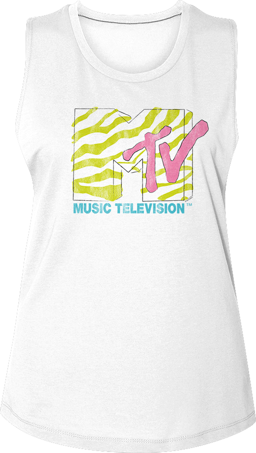 Ladies Stripes Logo MTV Muscle Tank Top