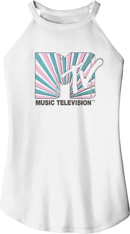 You'll have everyone saying, "I want my MTV" when you wear this Ladies Tie Dye Stripes Logo MTV Sleeveless Rocker Tank Top!