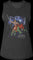 This ladies Masters of the Universe muscle tank top features an image of He-Man and Battle Cat posing in front of Castle Grayskull, which is surrounded by lightning bolts.