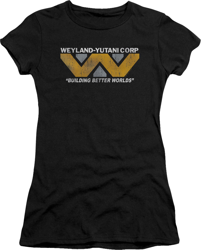 This ladies Alien shirt features the logo for the Weyland-Yutani Corporation. The shirt shows the company's slogan, "Building Better Worlds".