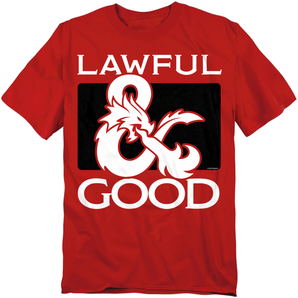 This Dungeons & Dragons t-shirt reads Lawful Good. The lawful good characters upheld society and its laws, believing that these laws are created to work for the good and prosperity of all.