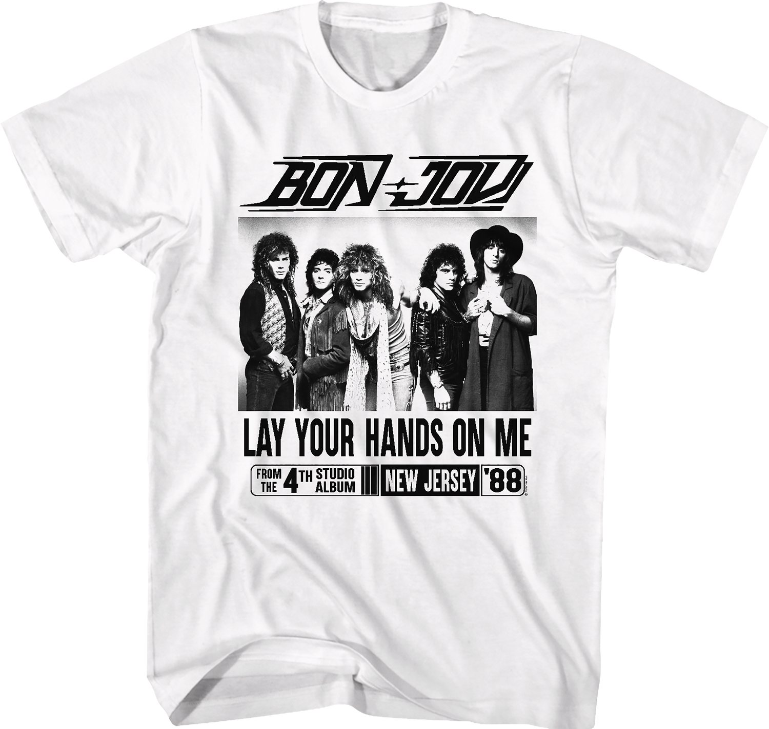 You'll feel your heart sing each time you wear this Lay Your Hands On Me Bon Jovi T-Shirt!