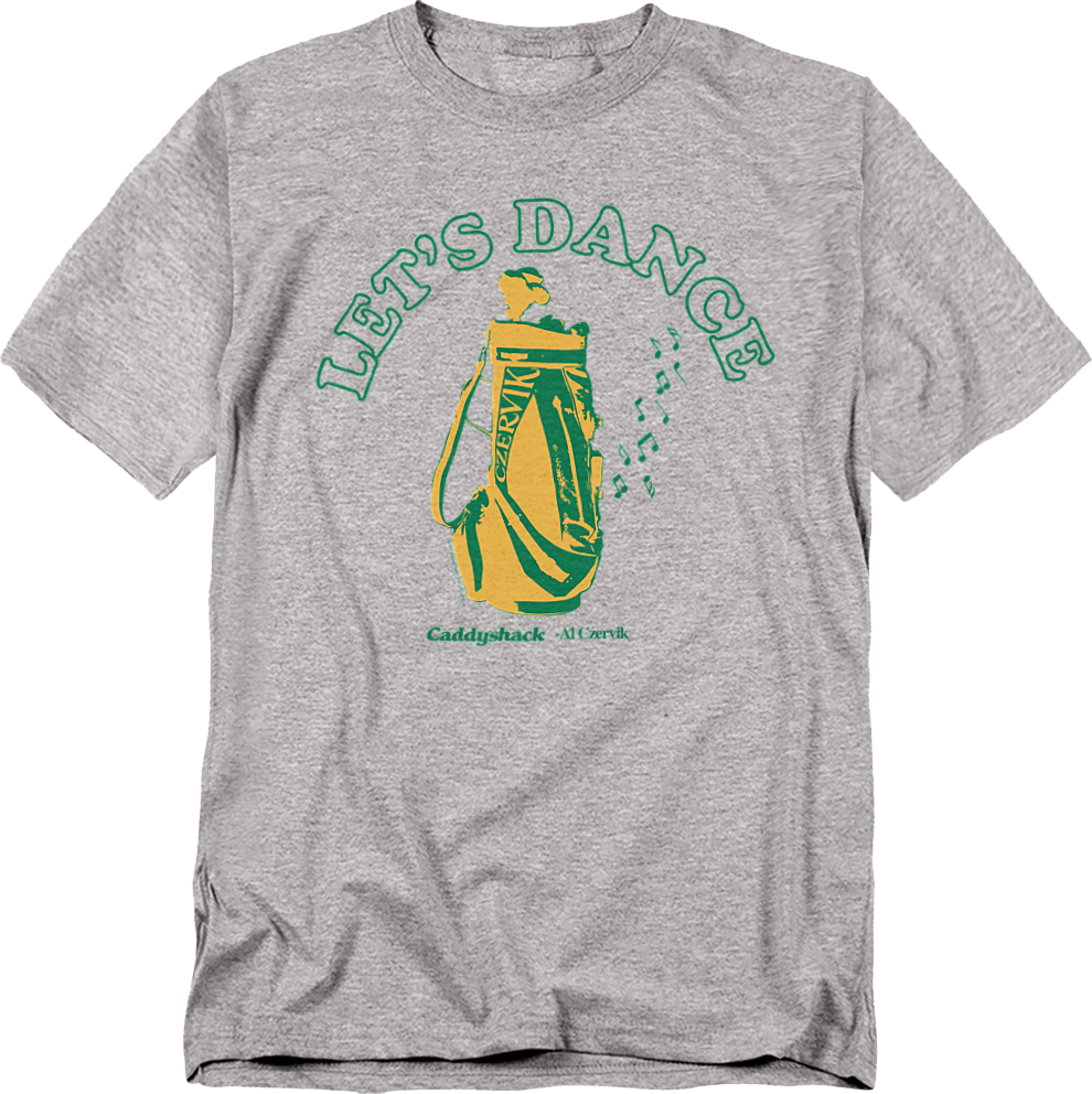 This Caddyshack features an image of Al Czervik's custom golf bag with a built-in stereo that plays music.  The shirt reads Let's Dance.