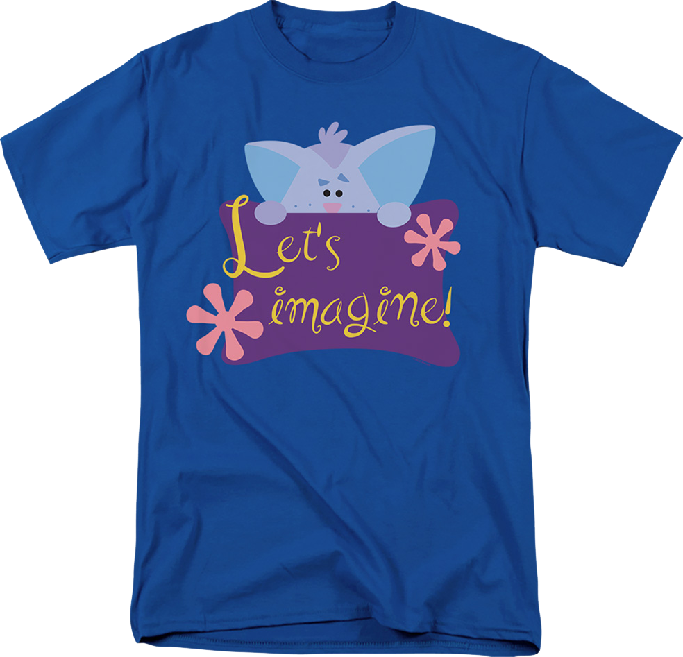 This Blue's Clues t-shirt features an image of Periwinkle. The shirt reads Let's Imagine!