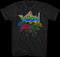 This Voltron t-shirt shows the Galaxy Alliance lions outlined in the colors that represent each spacecraft.