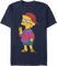 This Simpsons t-shirt features and image of Lisa Simpson wearing a backwards baseball cap, sunglasses, a striped sweater, torn shorts, sandals, and showing the peace sign with her fingers.