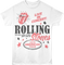 This Rolling Stones t-shirt features the band's iconic tongue logo. This image was used to promote the band's 1975 American tour. The shirt includes the title of the hit song "It's Only Rock 'N' Roll (But I Like It)".