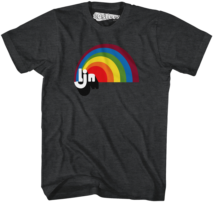 This 80sTees.com exclusive LJN t-shirt shows the logo for the company that produced some of the most popular toys and video games of the 80s.