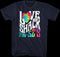 This B-52s t-shirt features the title of the band's signature song, "Love Shack".