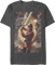 This Star Wars t-shirt shows Luke Skywalker running to attack the Galactic Empire with his lightsaber. This action packed image shows explosions in the background.