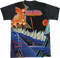 This Gravitar t-shirt shows a space shuttle avoiding a shooting bunker while trying to reach a fuel tank.