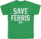 This Ferris Bueller's Day Off t-shirt features the famous Save Ferris saying on an Irish Green fabric.