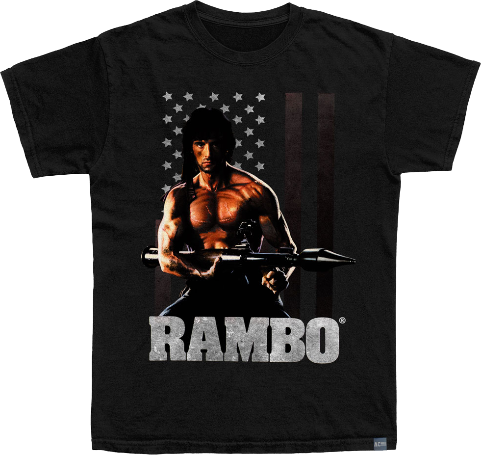 Locked. Loaded. Legendary. Our Ramberica Rambo T-Shirt explodes with ‘80s action and pure American grit! Featuring Rambo in full patriotic glory—guns blazing, flag waving—this tee is a tribute to the ultimate one-man army. Officially licensed and insanely comfy, this shirt is perfect for fans who eat danger for breakfast and flex freedom 24/7.