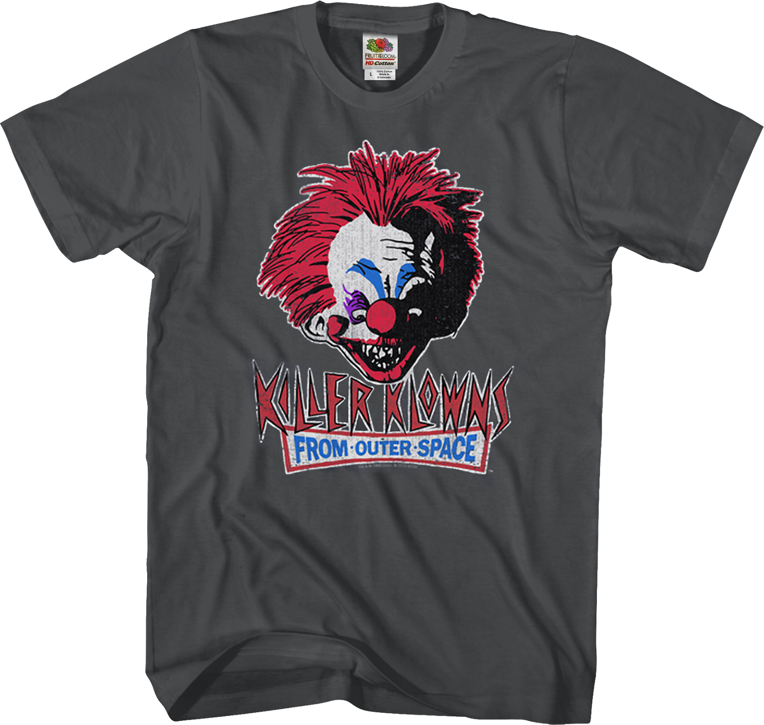 This Killer Kowns From Outer Space t-shirt features an image of a clown named Majori and the logo for the 1988 horror/comedy.