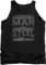 This Man of Steel Superman Tank Top shows Superman's nickname and logo as if it were forged from metal. "Yes, it's Superman, strange visitor from another planet, who came to Earth with powers and abilities far beyond those of mortal men. Superman, who can change the course of mighty rivers, bend steel in his bare hands, and who, disguised as Clark Kent, mild-mannered reporter for a great metropolitan newspaper, fights a never-ending battle for truth, justice and the American way."