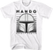 This Star Wars t-shirt features an image of the Mandalorian bounty hunter Din Djarin's helmet. Din is known throughout the galaxy by the name "Mando".