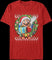 This Nintendo t-shirt shows Mario in a Christmas wreath that is decorated with Super Stars, a Super Mushroom, a Brick Block, and a Question Block. Mario is feeling the Christmas spirit, wearing a Santa Claus hat and holding a birthday present.
