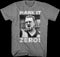 This Big Lebowski t-shirt features a black and white image of Walter Sobchak. The shirt includes Walter's famous quote, "Mark It Zero!"