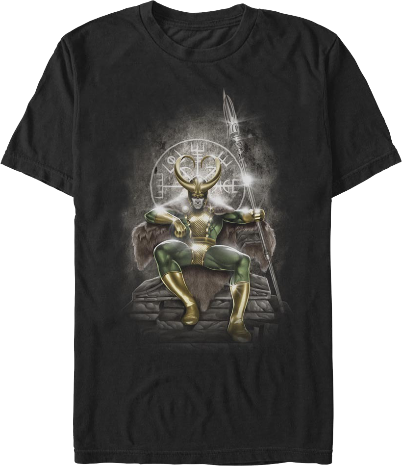 For any fan of Marvel Comic's bratty brother, this Marvel Loki Throne T-Shirt is a must have!