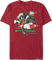 This Looney Tunes t-shirt shows Marvin The Martian wearing a Santa Claus hat and riding on top of his spaceship in outer space. The shirt reads Greetings Earthlings!