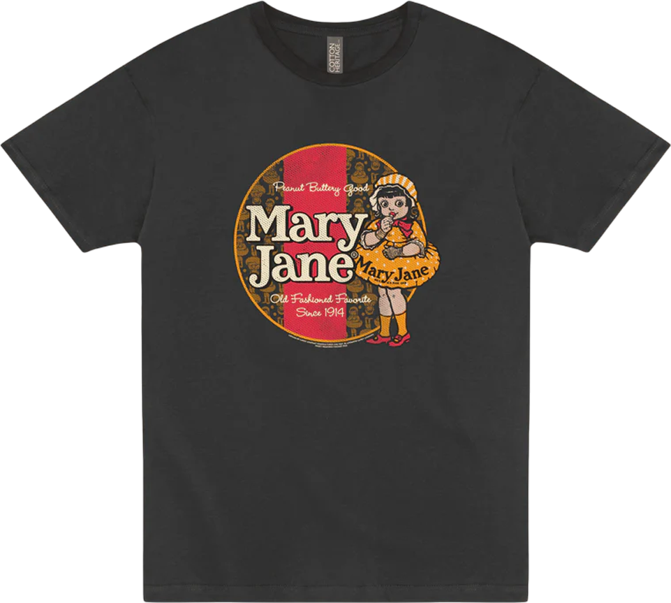 Mary Jane was introduced in 1914 as a chewy taffy-like candy made with peanut butter and molasses. Each candy is wrapped in a bright red and yellow wax paper with a portrait of a little girl named Mary Jane, giving it a charming, old-fashioned look. Mary Jane is often associated with traditional candy stores, Halloween, and childhood treats. Its vintage appeal keeps it relevant even today among candy enthusiasts. Everyone will know you are a fan when you wear this Mary Jane Atkinson Candy Company T-Shirt!