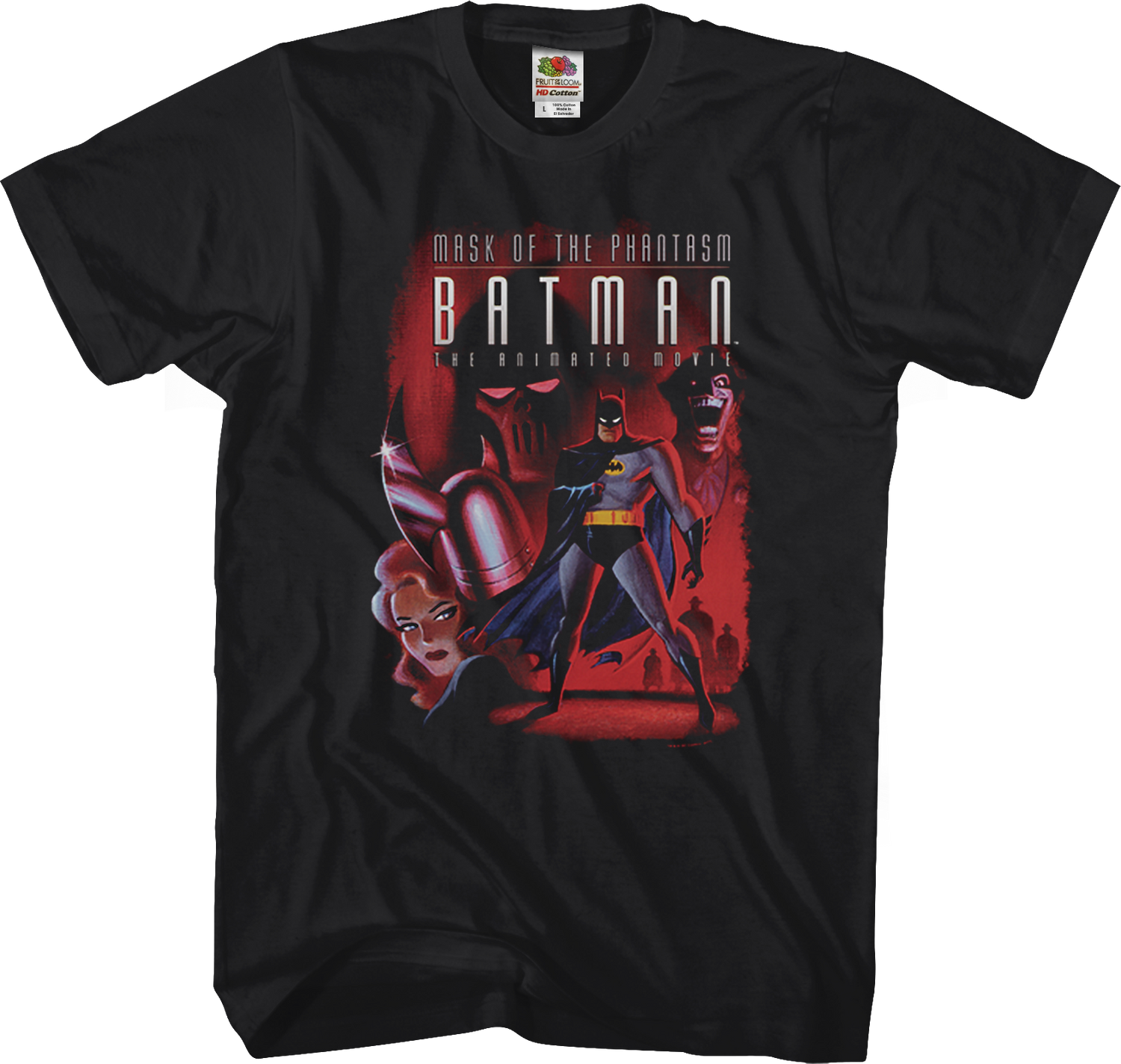 This Batman t-shirt features poster artwork for the 1993 animated movie Batman: Mask of the Phantasm.