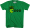 This 80sTees.com exclusive t-shirt features an 8-bit image of an Irish Pac-Man ready to chomp on shamrocks.