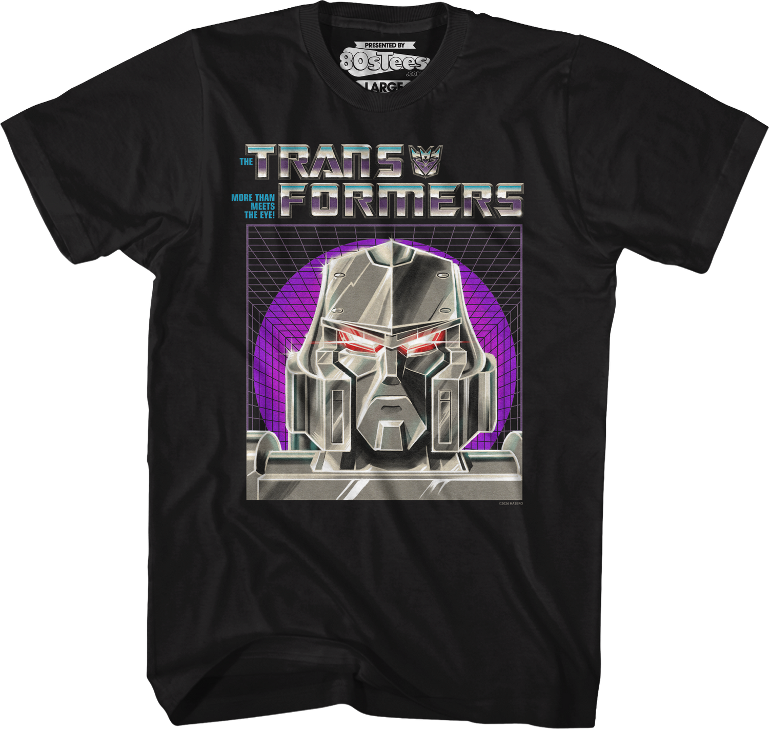 Everyone will immediately know you are a fan of the evil leader that transforms into a pistol and laser cannon when you wear this 80sTees.com exclusive Megatron Cubed Transformers T-Shirt!