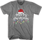 This 80sTees.com exclusive t-shirt shows falling snowflakes, Christmas lights, and a Santa Claus hat. The shirt reads "Merry Christmas."